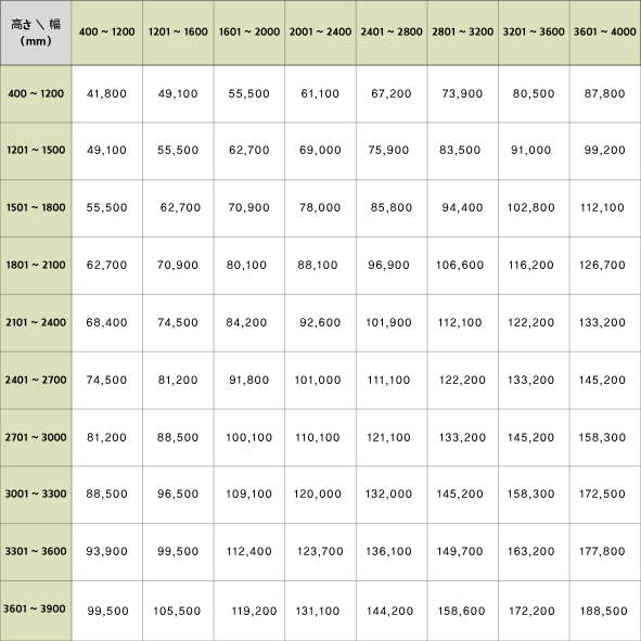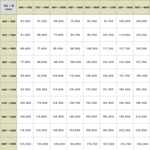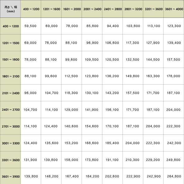 表示価格は、採寸や取付費用を含まないメーカー希望小売価格です。税別価格です。